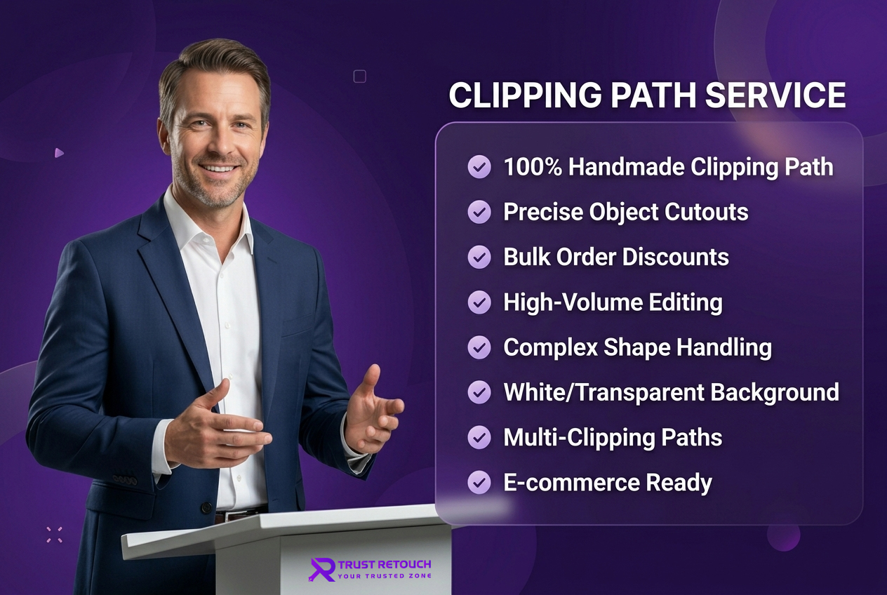 Simple Cutting Path is a straightforward and effective service used to remove the background from images with clean, straight edges or minimum details. This fashion is perfect for products, introductory shapes, and straightforward pictures where the subject can fluently be separated from the background. Our platoon at Trust Retouch uses advanced tools to insure precise slice of the subject, creating sharp edges and a indefectible result.
