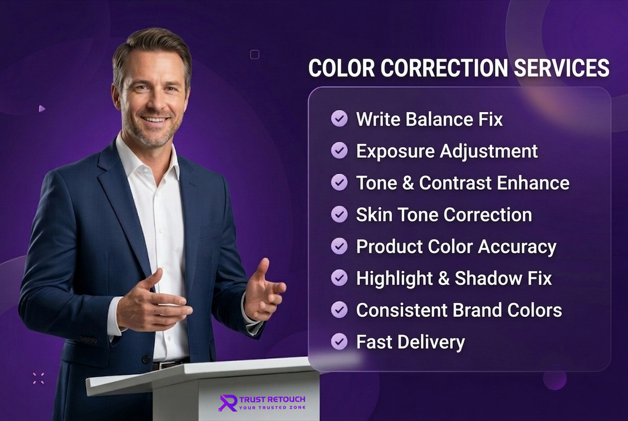 Affordable & Professional Color Correction Services Need to fix lighting, tones, or color balance in your photos — but don’t want to break the bank? Trust Retouch has the solution! Our affordable color correction service is perfect for photographers, studios, and eCommerce sellers who want polished, vibrant photos without hiring an in-house editor. We adjust brightness, contrast, white balance, and colors to make your images look sharp and consistent.
