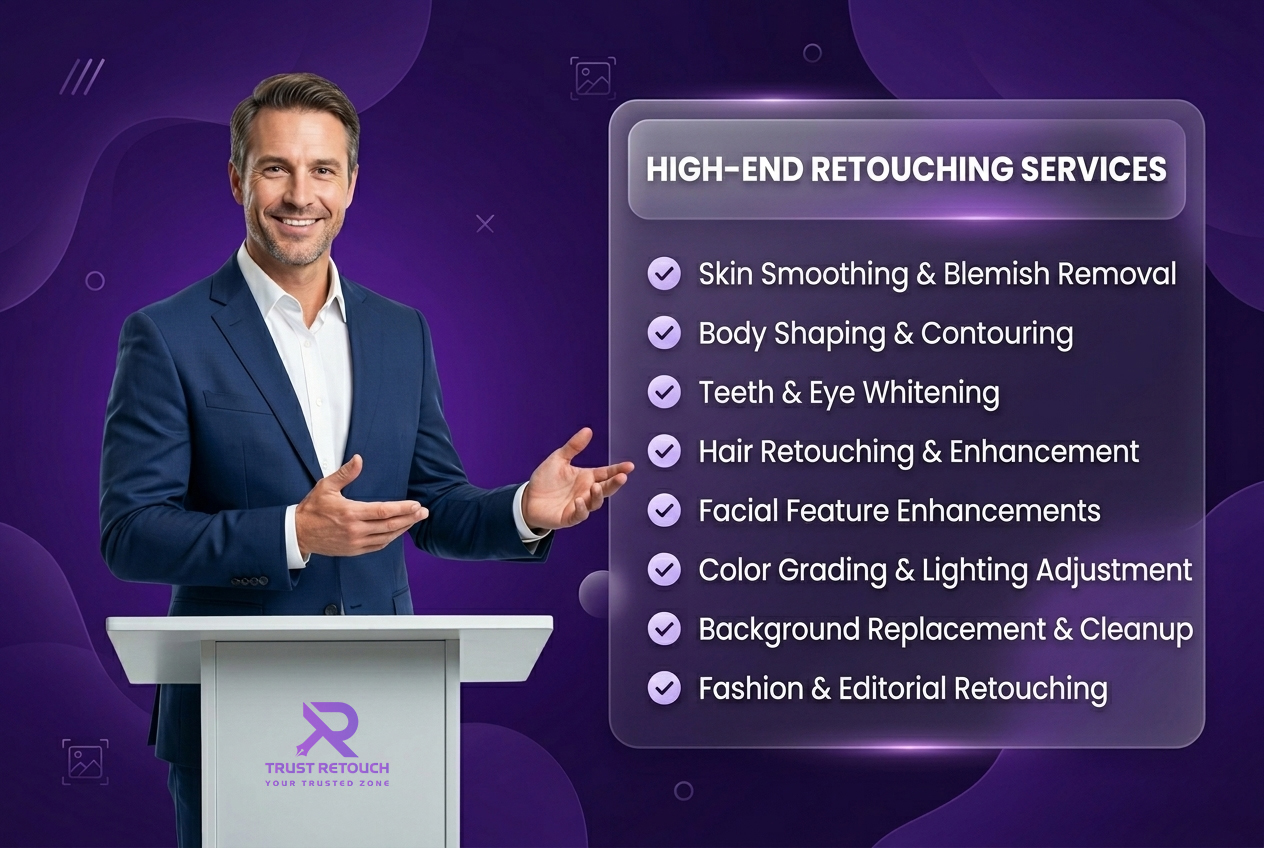 At Trust Retouch, we give expert portrayal high- end retouch services designed to deliver perfect and realistic results. Our professed contrivers precisely enhance every detail withoutover-editing, icing a clean and professional finish. We help you produce visually emotional pictures that stand out, make confidence, and leave a strong print.