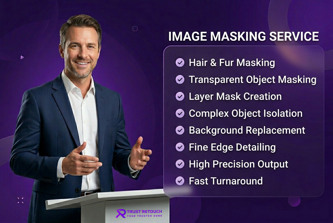 In the case of image editing, details sometimes do count. Professional Image Masking is a very sophisticated process of separating subjects and their backgrounds, particularly where the edges, such as hair, fur, or delicate cloths are complex. This is much better than the conventional background elimination that leaves no detail important even when it is in a complicated location.We know that we are dealing with details at Trust Retouch. We have sophisticated equipment and professional competencies in masking our professional image to perfection. With e-commerce products, advertising graphics, or product photography, we ensure that all the edges of the image are sharp and clean, and the subject of the photo stands out against any background. The natural flow of textures is also maintained by our specific method and the images made by you look as professional and smooth as possible.