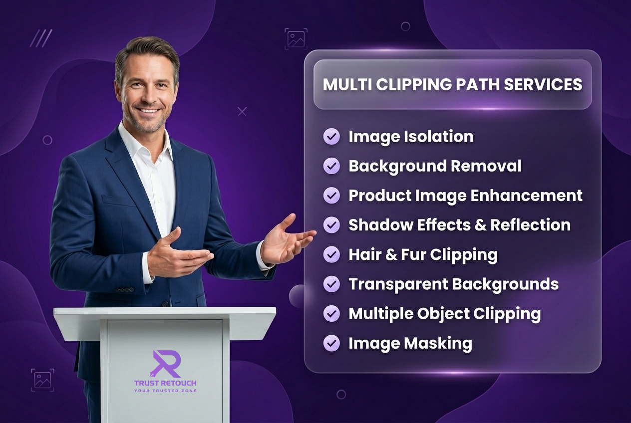 At Trust Retouch, we offer high- quality multi trimming path services designed to meet your business conditions. Our expert platoon precisely works on every detail to insure clean, accurate, and natural- looking results. We help you present your products in the stylish possible way, making them more charming to your guests and boosting your online deals.
