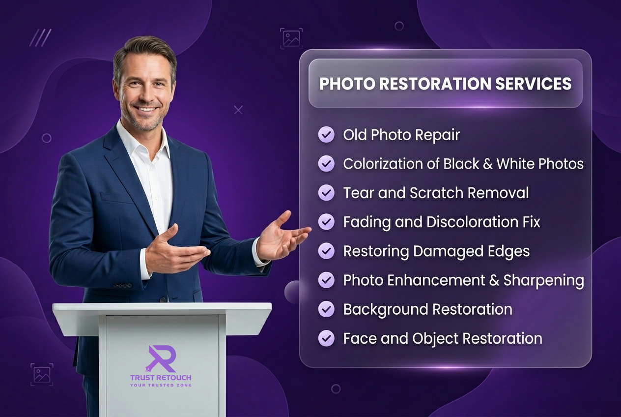 At Trust Retouch, we give dependable and affordable print restoration services with professional- position quality. Our professed contrivers precisely restore each image with attention to detail to insure accurate and natural results. We help you save your precious recollections by delivering high- quality restored images that look visually appealing and long- lasting.